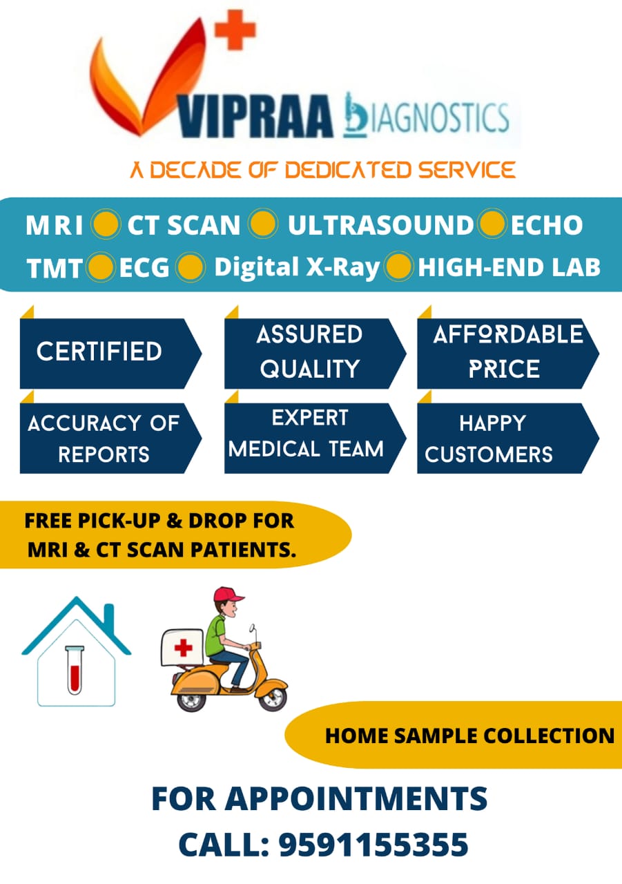 Vipraa diagnostic centre is fully equipped with modern diagnostic equipment. Healthy and hygienic environment. Very supportive, responsible and knowledgeable staff.